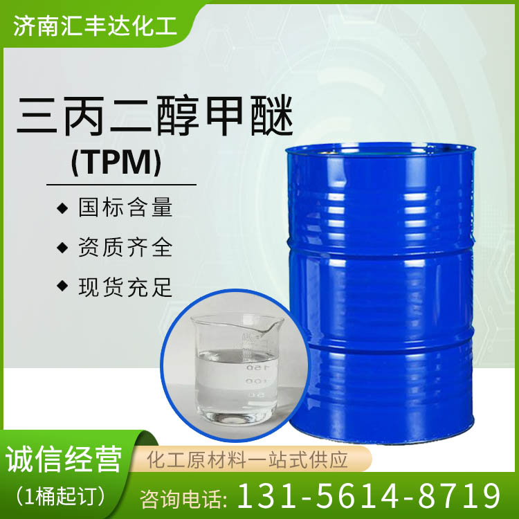 三丙二醇甲醚(英文名稱Tripropyleneglycolmonomethylether簡(jiǎn)稱TPM)又名三縮-1,2-丙二醇單甲醚,分子式C10H22O4,分子量206.28,它可完全水溶,并對(duì)眾多極性與非極性物質(zhì)有良好的溶解能力。蒸氣壓很低,揮發(fā)性很小,在一些情況下不被視為揮發(fā)性有機(jī)化合物,應(yīng)用行業(yè):1、涂料行業(yè)??勺鳛樗針渲?,無色粘稠穩(wěn)定的吸水性液體,幾乎無味無臭, 低毒。2、清洗劑。三丙二醇甲醚適合用于清洗劑,特別是要求極低揮發(fā)速度的體系中,如除蠟劑和地板清潔劑。是潤(rùn)滑脂和油脂很好的偶合劑,可用作除漆劑和動(dòng)物油脂除去劑。3、油墨行業(yè)。使油墨毒性降低,改善操作環(huán)境,提高印刷質(zhì)量。